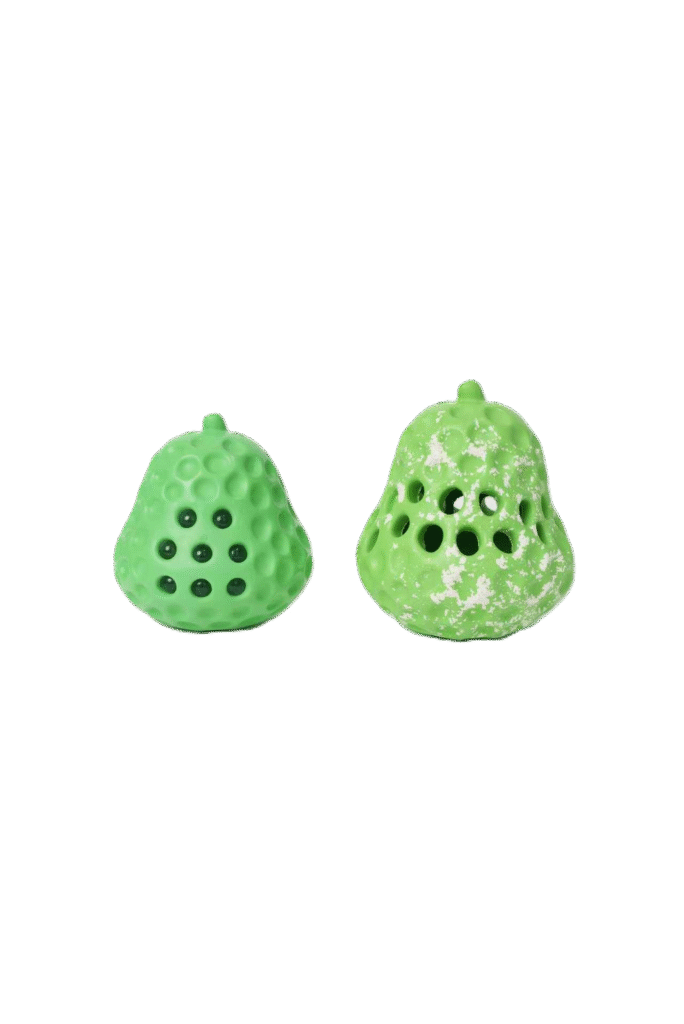 Zabawka GRUSZKA charakteryzuje się oryginalną konstrukcją i unikalnym designem. Zabawka posiada charakterystyczne otworki, w których mogą być ukryte ulubione smaczki. GRUSZKA wykonana jest z naturalnego kauczuku, dzięki czemu jest trwała i odporna na intensywną zabawę. Pomaga zachować zdrowie zębów i dziąseł naszych pupili. GRUSZKA pokryta jest powłoką antybakteryjną. Zabawka może być wypełniona smaczkami bądź suchą karmą, a także można ją posmarować ulubionym przysmakiem psa.
